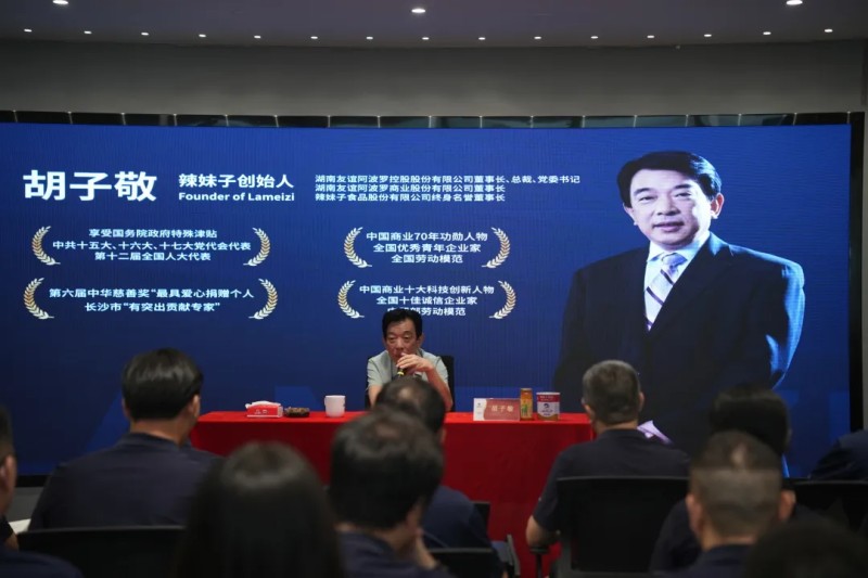 胡子敬先生作為辣妹子的靈魂人物,見證了品牌從誕生到發展壯大的每一個重要時刻。在培訓現場,他以親身經歷為藍本,講述辣妹子品牌源自1958年成立的沅江食品廠,歷經改制困境,1998年攜知青情懷入駐,后期,打造湖湘文化特色品牌。通過創新研發辣椒醬、拓展全國渠道、深耕餐飲市場,辣妹子實現了持續穩定發展,成為細分行業代名詞,并持續布局全產業鏈,讓世界品嘗湖南味道。胡子敬先生繪聲繪色的講述著那些鮮為人知的創業故事,員工們仿佛穿越時空,回到了那個充滿激情與夢想的年代。他提到,創業初期,團隊面臨著資金短缺、技術難題等諸多困難,但大家憑借著對辣椒調味品行業的熱愛和執著,一步一個腳印地克服了重重障礙。正是這種堅韌不拔的精神,鑄就了辣妹子品牌今日的輝煌。