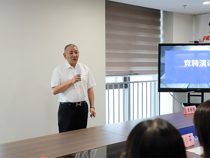 最后,辣妹子公司常務副總魯勁峰發表了總結致辭,就生產、研發、銷售等方面,對在座全體成員提出了清晰的指示,同時對未來工作提出了更高的要求,希望所有競聘者以本次會議為契機,更加團結一致,同心同德,扎實工作,為辣妹子的辣椒戰略貢獻自己的力量,為自己贏得一份錦繡前程!